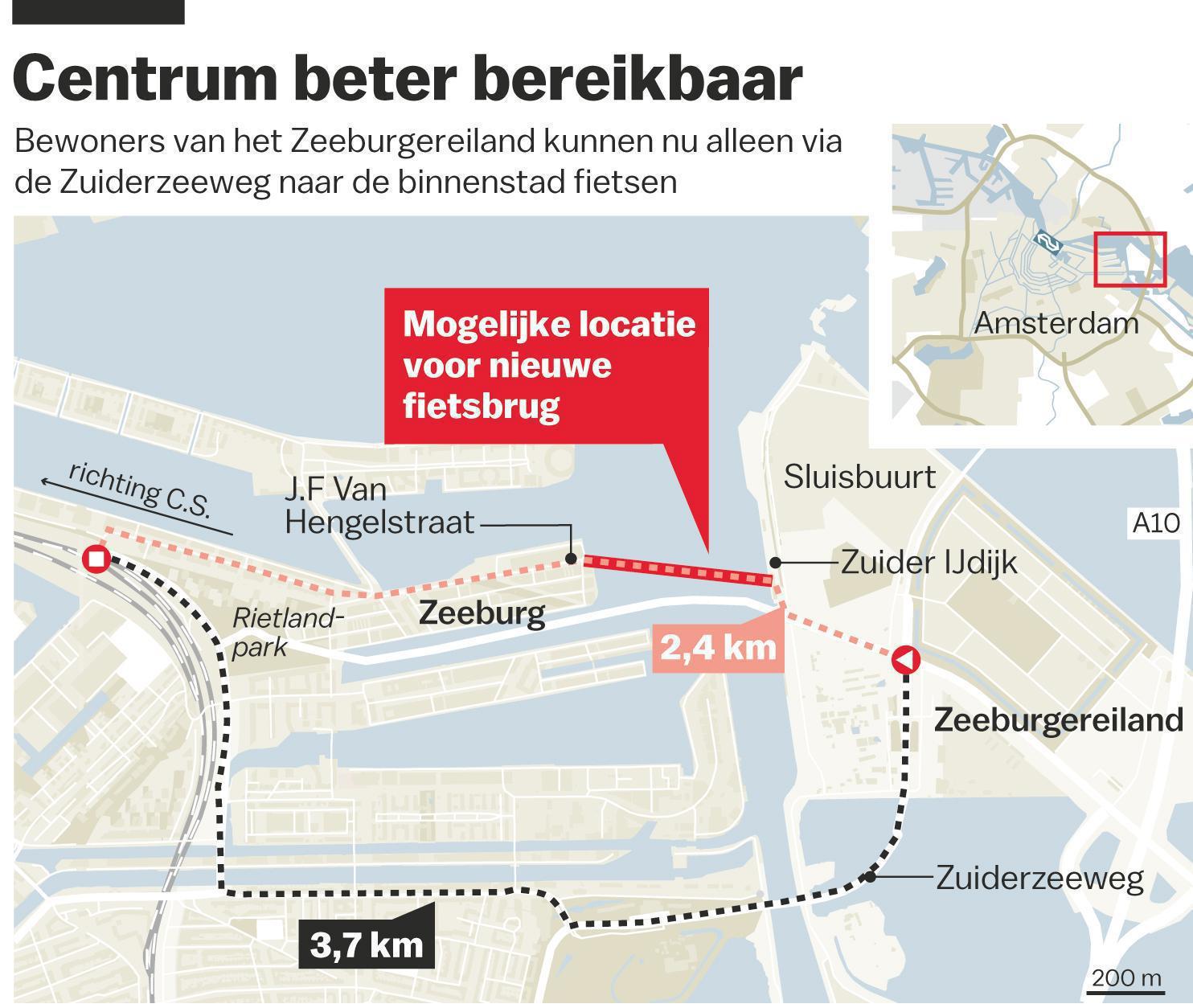 De aanleg van een fietsbrug tussen het Zeeburgereiland en Sporenburg is duur en verleidt niet veel automobilisten of ov-reizigers voortaan op de fiets naar het werk te gaan. De gemeente zet ondanks deze bevindingen door en wil verder onderzoek naar de aanleg van zo'n brug.